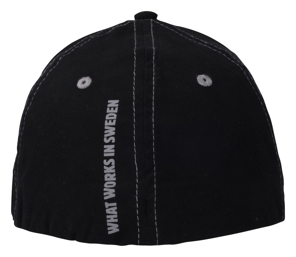 Czarna, elastyczna czapka z daszkiem.