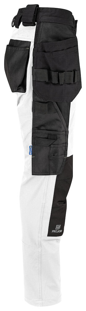 Spodnie w pełni elastyczne, o nowoczesnym kroju. Górna część boków spodni nie jest elastyczna, co zapewnia większą stabilność. Kieszenie na gwoździe z dodatkowymi przegrodami wzmocnionymi Cordura® od wewnątrz. Kieszenie na gwoździe można łatwo zdjąć, rozrywając kontrastujący szew od wewnątrz. Otwory wentylacyjne z tyłu spodni. Obszerne kieszenie na nogach po obu stronach. Lewa kieszeń na nogach na narzędzia i długopisy, kieszeń na telefon z magnetycznym zapięciem i uchwyt D-ring. Prawa kieszeń na nogach na miarę i narzędzia, oraz zatrzask do noża. Szerokie pętle na pasie z tyłu, aby uniknąć nacisku pasa. Kieszenie tylne z Cordura®, jedna z klapką i z magnetycznym zapięciem. Wyprofilowane kolana. Wewnętrzne kieszenie na ochraniacze kolanowe, regulowane na dwie wysokości. Kieszenie na gwoździe i ochraniacze kolanowe wzmocnione Cordura®. Możliwość zamocowania systemu Molle po obu stronach.