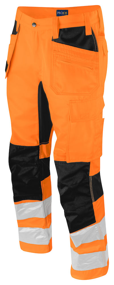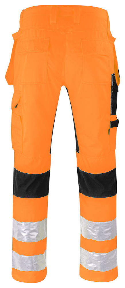 Spodnie do pasa które zapewniają maksymalną swobodę ruchu. Elastyczny materiał w kroku dla większego komfortu i elastyczności, rozciąga się również z tyłu kolan. Kieszenie kaburowe, które można schować do kieszeni bocznych, po lewej stronie kieszeń z dodatkową kieszenią, a po prawej stronie szlufki na narzędzia i otwarte kieszenie. Tylne kieszenie z patką i zapięciem na rzep. Kieszeń na miarkę składaną i kieszeń na narzędzia. Dwie pętle na młotek, po jednej z każdej strony. Profilowane kolana z wewnętrznymi kieszeniami na ochraniacze kolan, regulowane w dwóch poziomach wysokości. Wzmocnienia w kieszeniach kaburowych, kieszeni na miarkę i na kolanach dla zwiększenia wytrzymałości. Rozmiar C42-C64 można wydłużyć o 5 cm.
