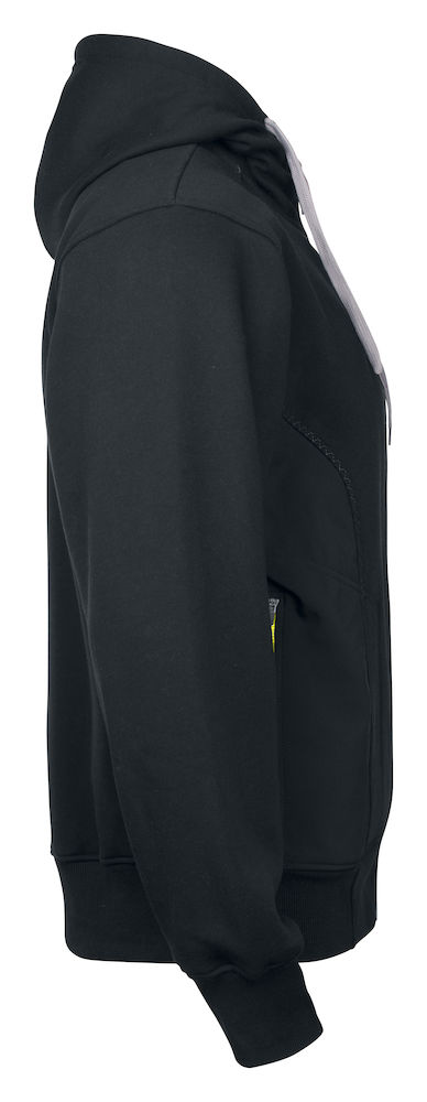 Kaptur z zamkiem błyskawicznym. Boki wzmocnione materiałem Softshell. Boczne kieszenie zapinane na zamki błyskawiczne.