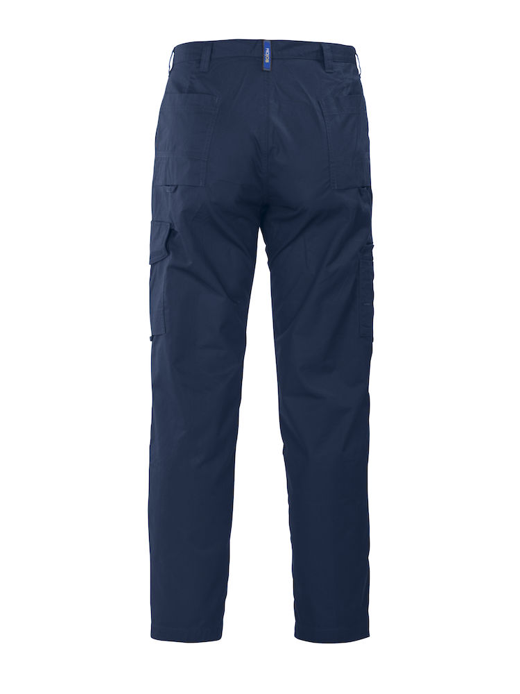 Spodnie bez zaszewek z przodu. Kieszenie boczne z przodu. Kieszeń na ważne dokumenty z zamkiem błyskawicznym po prawej stronie. Dwie zewnętrzne kieszenie tylne. Dwie kieszenie na nogawkach. Kieszeń na lewej nogawce z patką i wewnętrzną kieszenią na telefon komórkowy. Kieszeń na prawej nogawce z miejscem na telefon komórkowy, długopisy, dokumenty i przymiar metrowy. Uchwyt typu D-ring na klucze, identyfikator itd. Wewnętrzne kieszenie na ochraniacze kolan. Pętle pod kieszeniami tylnymi i bocznymi dla systemu Inbags.