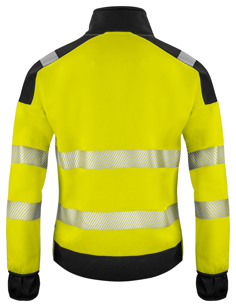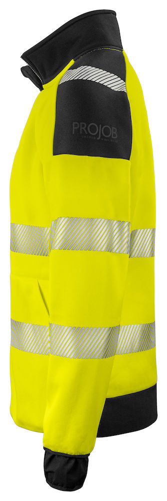 Rozpinana bluza z kontrastowym kolorem na ramionach, stójce, mankietach i na dolnej części pleców. Dopasowany krój z elastycznym materiałem softshell w dolnej części pleców zapewnia maksymalną swobodę ruchów i wygodę. Pojemne kieszenie boczne zapinane na zamek, pojemne kieszenie wewnętrzne z siateczki. Dodatkowy mankiet na końcach rękawów z materiału softshell z uchwytem na kciuk. Elementy odblaskowe firmy 3M, obecne również na ramionach. Logo Projob na ramieniu i na dole bluzy.