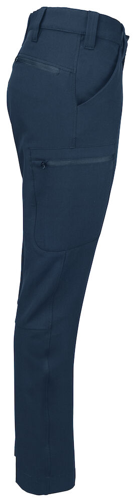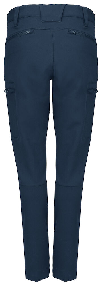 Spodnie robocze z pełnego stretchu, zapewniające maksymalną swobodę ruchów. Nowoczesny, dopasowany krój. Wszyty, regulowany stretch w pasie dla wygody, również gumowany, aby utrzymać spodnie na miejscu. Otwarty kieszenie boczne po obu stronach. Kieszenie na nogawkach po obu stronach z zamkiem błyskawicznym, także kieszenie tylne z zamkiem błyskawicznym. Szersza szlufka z tyłu, aby zapobiec naciskowi pasa. Ukryty guzik z przodu. Rozpruwając czerwone szwy na dole, można wydłużyć spodnie o 5 cm.