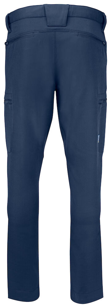 Spodnie robocze z pełnego stretchu, zapewniające maksymalną swobodę ruchów. Nowoczesny, dopasowany krój. Wszyty, regulowany stretch w pasie dla wygody, również gumowany, aby utrzymać spodnie na miejscu. Otwarty kieszenie boczne po obu stronach. Kieszenie na nogawkach po obu stronach z zamkiem błyskawicznym, także kieszenie tylne z zamkiem błyskawicznym. Szersza szlufka z tyłu, aby zapobiec naciskowi pasa. Ukryty guzik z przodu. Rozpruwając czerwone szwy na dole, można wydłużyć spodnie o 5 cm.