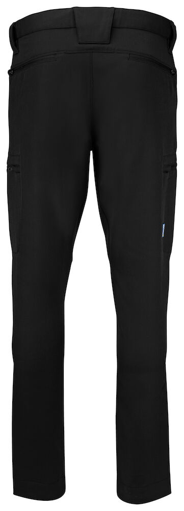 Spodnie robocze z pełnego stretchu, zapewniające maksymalną swobodę ruchów. Nowoczesny, dopasowany krój. Wszyty, regulowany stretch w pasie dla wygody, również gumowany, aby utrzymać spodnie na miejscu. Otwarty kieszenie boczne po obu stronach. Kieszenie na nogawkach po obu stronach z zamkiem błyskawicznym, także kieszenie tylne z zamkiem błyskawicznym. Szersza szlufka z tyłu, aby zapobiec naciskowi pasa. Ukryty guzik z przodu. Rozpruwając czerwone szwy na dole, można wydłużyć spodnie o 5 cm.