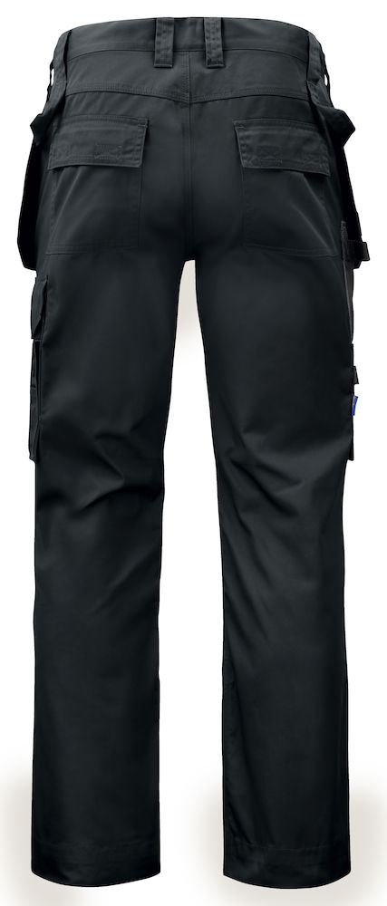 Spodnie rzemieślnicze z chowanymi kieszeniami kaburowymi, z których jedna jest zapinana na zamek. Tylne kieszenie z klapką i zapięciem na rzep. Kieszeń na nogawce z dodatkową przegródką i klapką zamykaną na rzep. Kieszeń na miarkę z uchwytem na nóż. Wzmocnienia w kieszeniach kaburowych, kieszeni na miarkę oraz kieszeniach na ochraniacze kolan. Odblaskowe detale po zewnętrznej stronie nogawek. Profilowane kolana z kieszeniami na ochraniacze, regulowanymi na dwóch wysokościach, z dostępem od wewnątrz. Rozmiary C42-C64 można przedłużyć o 5 cm dzięki specjalnej zakładce na dole nogawki.