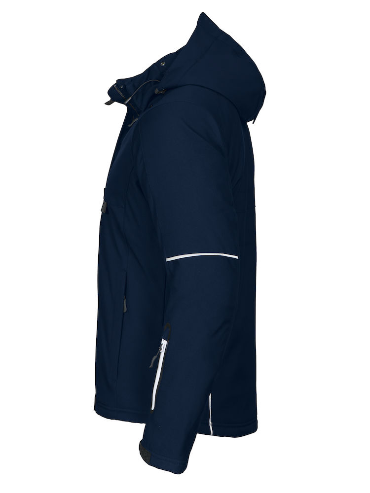 Trzywarstwowa, funkcjonalna kurtka wykonana z tkaniny typu Softshell, która jest odporna na działanie wiatru i wody. Wyściełana pikowaną podszewką. Dwie kieszenie na piersi, lewa z kieszenią wewnętrzną na telefon. Kurtka wyposażona w uchwyt na dokumenty. Dwie wewnętrzne kieszenie zapinane na zamek, jedna większa. Kurtka posiada dwie boczne kieszenie i kieszeń na lewym rękawie. Kieszeń wewnętrzna po lewej stronie. Zamki wentylacyjne pod pachami. Ściągacz na dole i wyprofilowane mankiety. Przedłużony tył dla większego komfortu. Odblaskowe wstawki na rękawach i z tyłu. Odczepiany i regulowany kaptur. Kołnierz i wewnętrzne kieszenie wyściełane polarem dla większego komfortu.