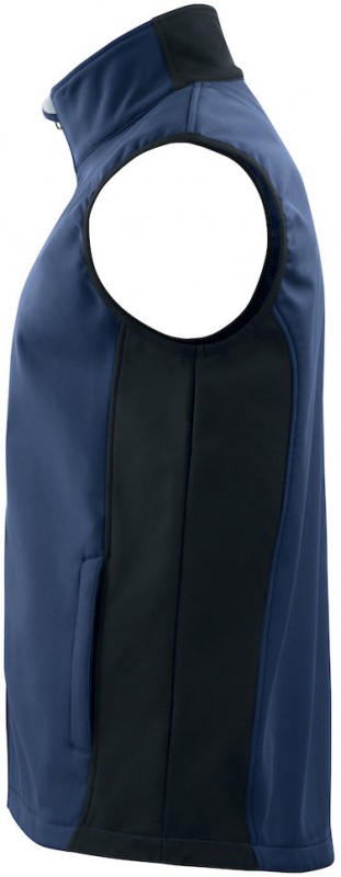 Kamizelka softshellowa z właściwościami dla lepszej oddychalności. Dwie boczne kieszenie oraz kieszeń na piersi na zamek. Dwie wewnętrzne kieszenie. Zamek błyskawiczny z przodu z wewnętrzną listwą przeciwwiatrową i osłoną podbródka zapobiegającą otarciom. Regulowana w talii.