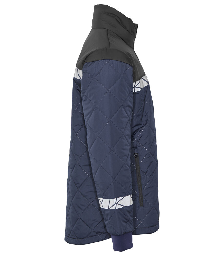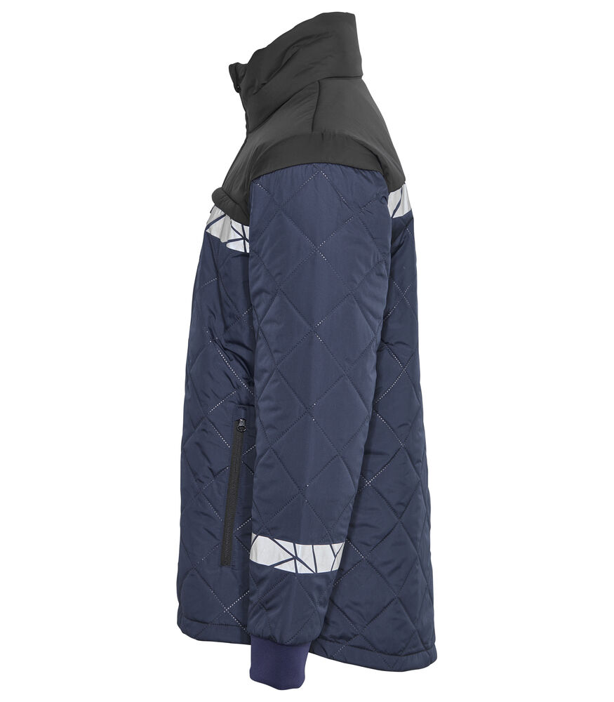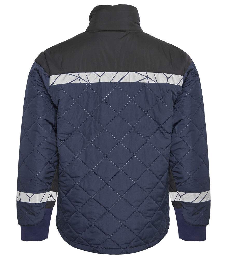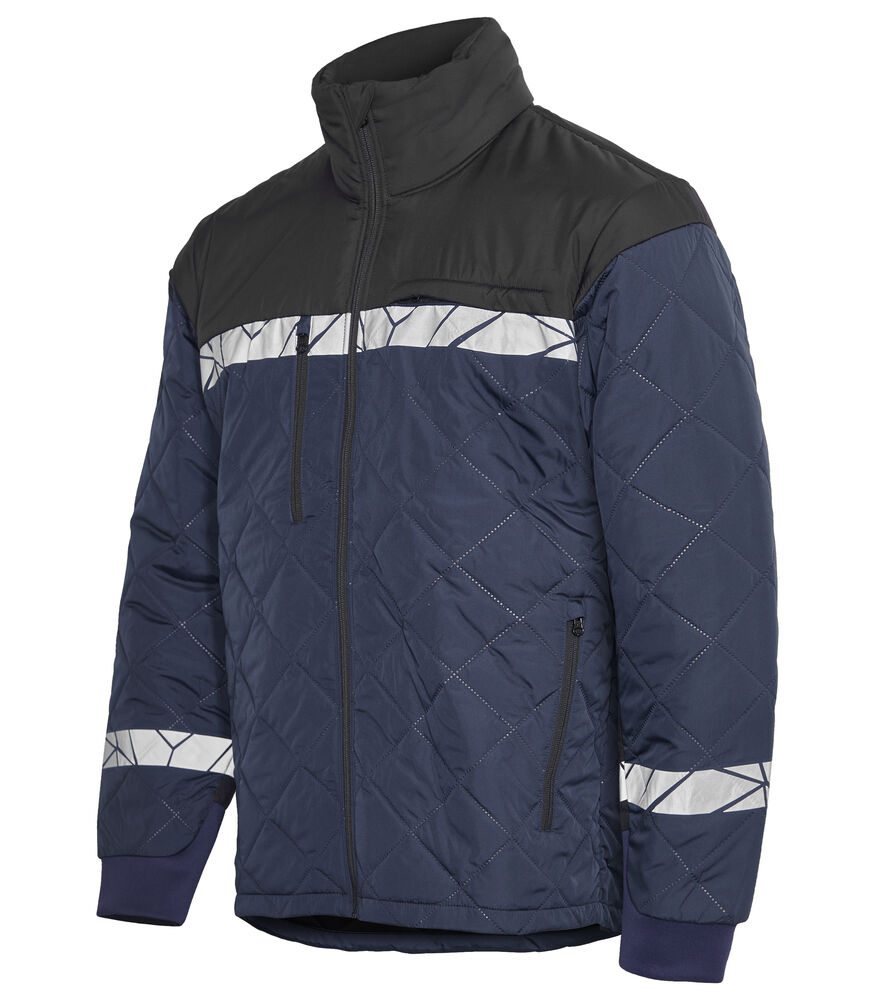 Kurtka z lekkiego, bezszwowego materiału pikowanego w diamentowy wzór. Kieszenie na piersi po obu stronach z zamkiem błyskawicznym, po lewej stronie z wewnętrznym uchwytem do przypięcia identyfikatora. Kieszenie po bokach z zamkiem błyskawicznym, a także otwarte kieszenie wewnętrzne na dokumenty itp. Kieszonka na metkę w wewnętrznej lewej szwie.
