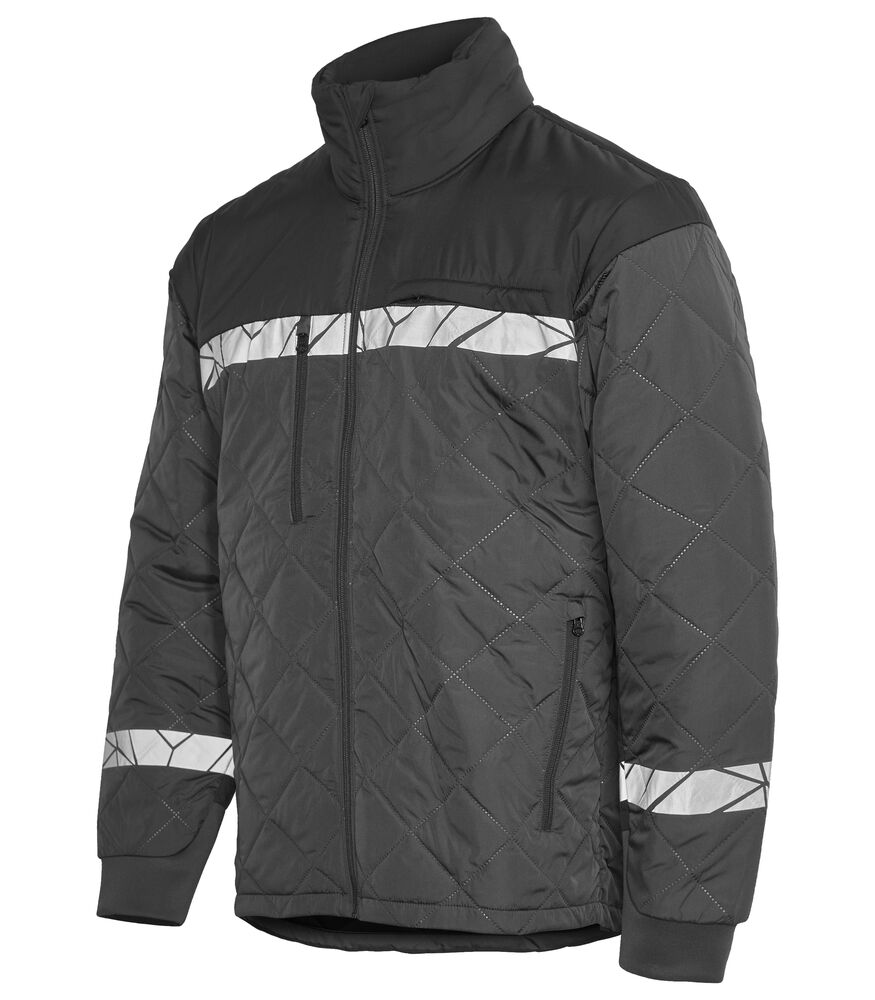 Kurtka z lekkiego, bezszwowego materiału pikowanego w diamentowy wzór. Kieszenie na piersi po obu stronach z zamkiem błyskawicznym, po lewej stronie z wewnętrznym uchwytem do przypięcia identyfikatora. Kieszenie po bokach z zamkiem błyskawicznym, a także otwarte kieszenie wewnętrzne na dokumenty itp. Kieszonka na metkę w wewnętrznej lewej szwie.