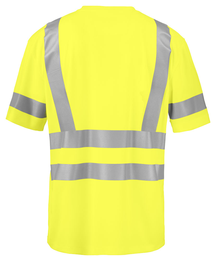 T-shirt odblaskowy wykonany z poliestru ”spun dyed” z okrągłym kołnierzem oraz wzmocnioną plisą dekoltu. Funkcjonalny materiał błyskawicznie przenosi wilgoć z dala od skóry. Oznacza to, że odzież schnie szybko, zachowuje świeżość na dłużej. Materiał nie marszczy się i nie kurczy.