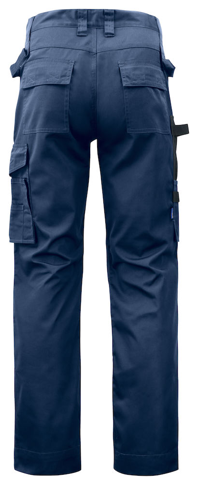 Spodnie robocze z kieszeniami bocznymi. Tylne kieszenie z klapką i zapięciem na rzep. Kieszeń na nogawce z dodatkową przegródką i klapką zamykaną na rzep. Kieszeń na miarkę z uchwytem na nóż. Wzmocnienia w kieszeniach kaburowych, kieszeni na miarkę oraz kieszeniach na ochraniacze kolan. Odblaskowe detale po zewnętrznej stronie nogawek. Profilowane kolana z kieszeniami na ochraniacze, regulowanymi na dwóch wysokościach, z dostępem od wewnątrz. Rozmiary C42-C64 można przedłużyć o 5 cm dzięki specjalnej zakładce na dole nogawki.
