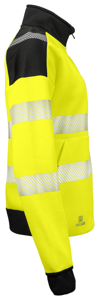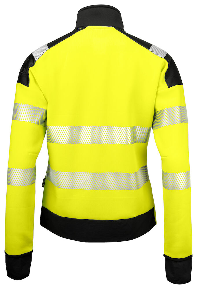 Rozpinana bluza damska z kontrastowym kolorem na ramionach, stójce, mankietach i na dolnej części pleców. Dopasowany krój z elastycznym materiałem softshell w dolnej części pleców zapewnia maksymalną swobodę ruchów i wygodę. Pojemne kieszenie boczne zapinane na zamek, pojemne kieszenie wewnętrzne z siateczki. Dodatkowy mankiet na końcach rękawów z materiału softshell z uchwytem na kciuk. Elementy odblaskowe firmy 3M, obecne również na ramionach. Logo Projob na ramieniu i na dole bluzy.