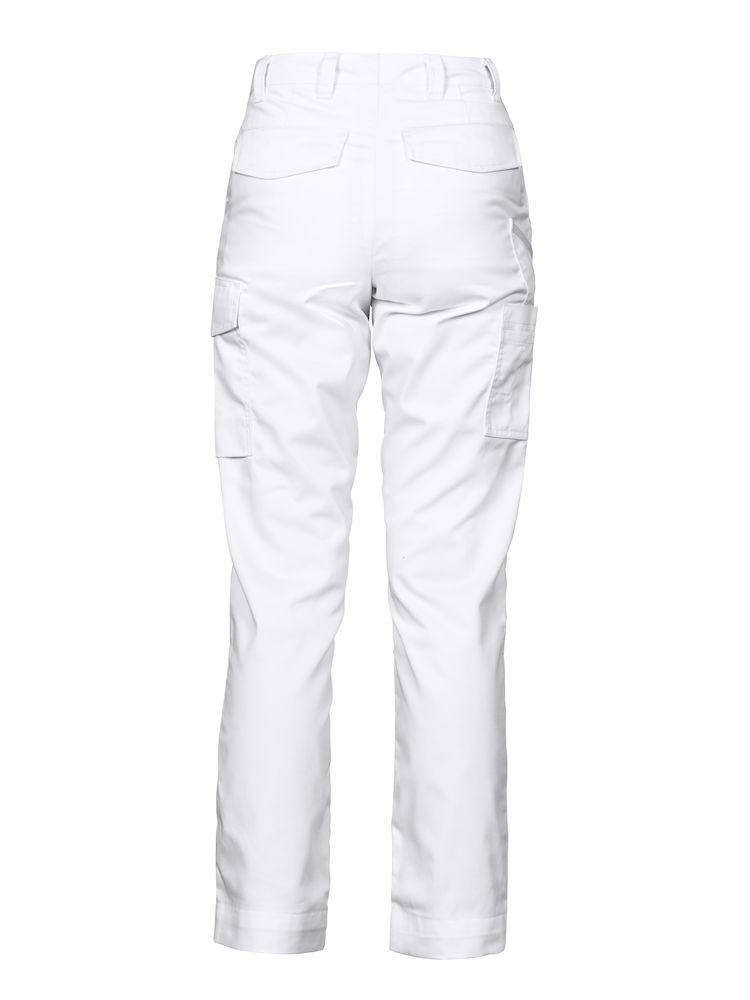 Lekkie spodnie robocze. Kieszenie na nogawkach, po lewej stronie kieszeń z patką i zapięciem na rzep, a po prawej stronie kieszenie na długopisy i narzędzia, także jedna kieszeń na miarkę składaną. Tylne kieszenie z patką i zapięciem na rzep. Rozmiary C42-C64 są regulowane. Przez odprucie czerwonego przeszycia u dołu nogawek, spodnie mogą być wydłużone o 5cm.