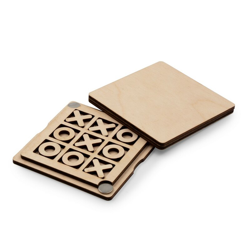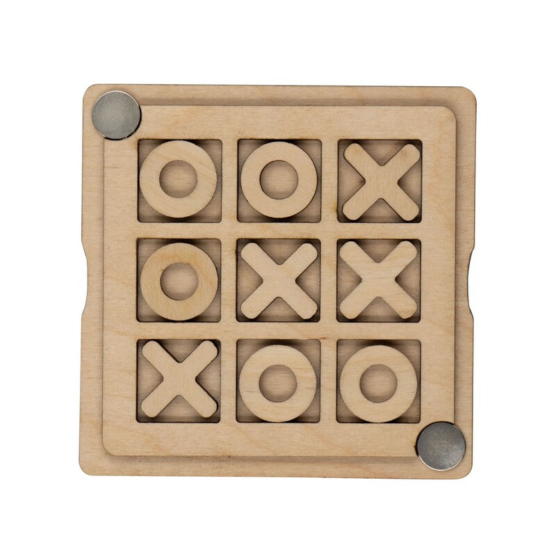 Gra "kółko i krzyżyk" w pudełku zamykanym na magnesy, zawiera elementy w kształcie kółek i krzyżyków, może być ciekawym sposobem na ćwiczenie strategii i logicznego myślenia, kieszonkowy rozmiar, produkt wykonany ze sklejki. Wyprodukowana w Europie / made in Europe.