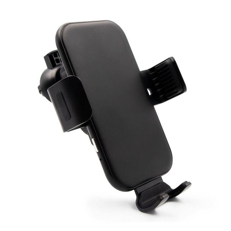 Samochodowy uchwyt do telefonu, ładowarka bezprzewodowa 15W, działa z telefonami posiadającymi możliwość ładowania indukcyjnego, funkcja szybkiego ładowania, mocowanie do wentylacji, 2 przyciski sensoryczne do sterowania zaciskami, funkcja umożliwiająca wyjęcie telefonu po odcięciu zasilania, zasięg ładowania bezprzewodowego do 6 mm, wejście USB-C 5V/2A, 9V/2A (max), wyjście bezprzewodowe 5V/1A, 9V/1.12A, 9V/1.67A, 100 cm kabel USB-C w komplecie