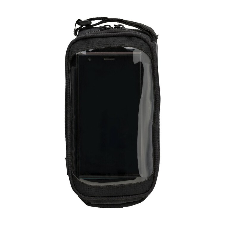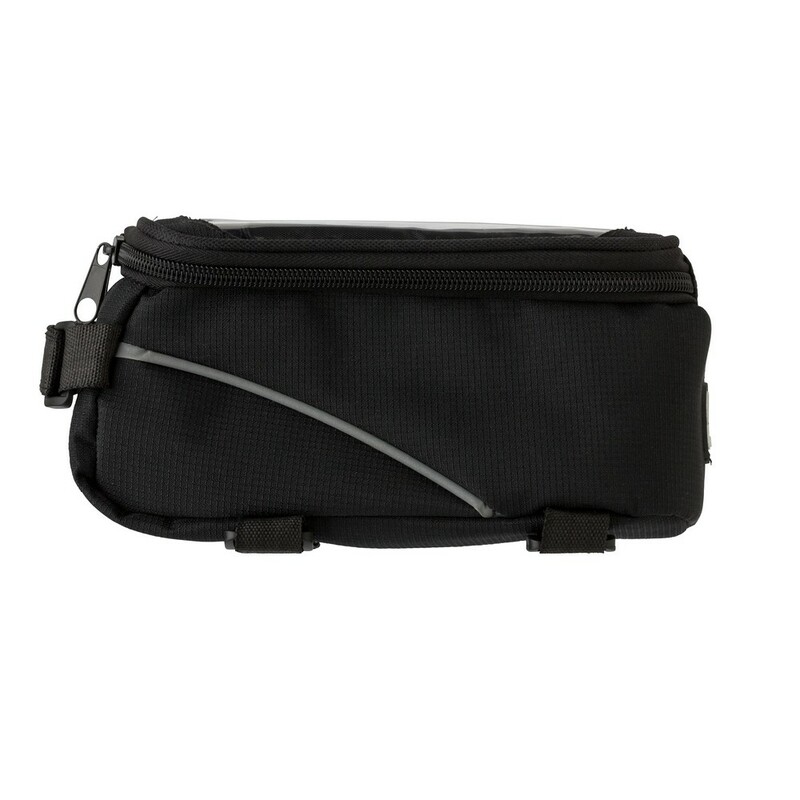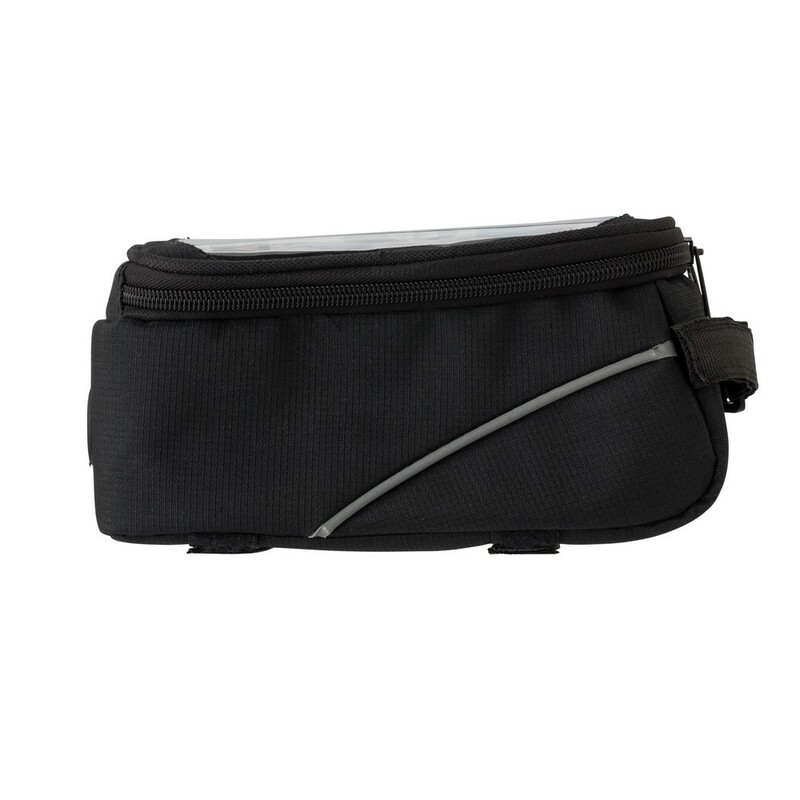 Torba rowerowa, przegroda główna zamykana na zamek błyskawiczny, kieszeń na telefon z transparentnym okienkiem umożliwiającym obsługę ekranów dotykowych, wyjście na słuchawki, mocowana na rzep