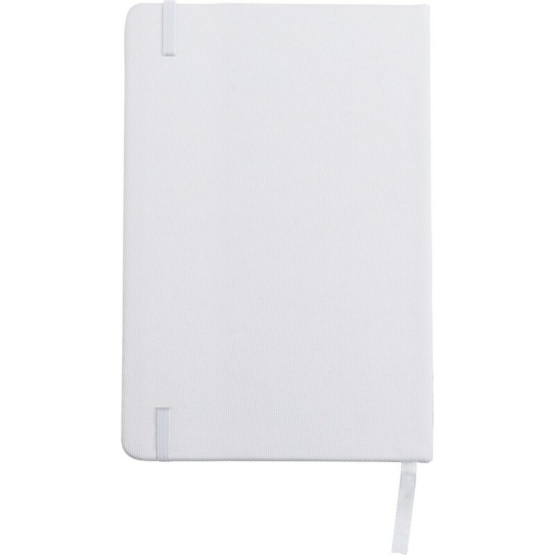 Notatnik RPET (ok. A5, 80 kartek w linie), tasiemka zakładkowa i elastyczna opaska do zamykania
