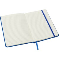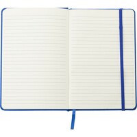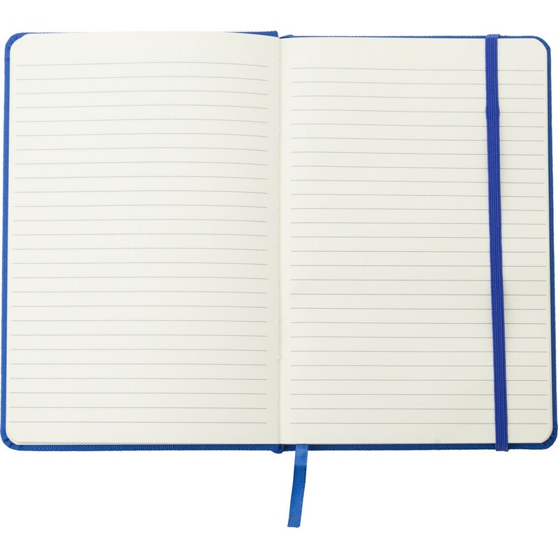 Notatnik RPET (ok. A5, 80 kartek w linie), tasiemka zakładkowa i elastyczna opaska do zamykania