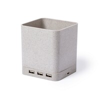 Ładowarka bezprzewodowa 5W ze słomy pszenicznej, hub USB 2.0, pojemnik na przybory do pisania, stojak na telefon V0116-00