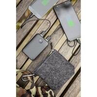 Power bank Air Gifts 10000 mAh, może zmieścić się w kieszeni czy większości przegródek w plecaku, posiada cyfrowy wyświetlacz poziomu naładowania, wejścia 5V/2A: USB-C oraz micro USB, 2 wyjścia USB (max. 5V/2A), możliwość ładowania dwóch urządzeń jednocześnie, w komplecie kabel USB-C oraz filcowe etui z karabińczykiem umożliwiającym przypinanie, produkt wykonany z ABS i filcu
