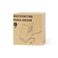 Bambusowa ładowarka bezprzewodowa 5W, 4 porty hub USB 2.0, pojemnik na przybory do pisania, stojak na telefon V0198-18