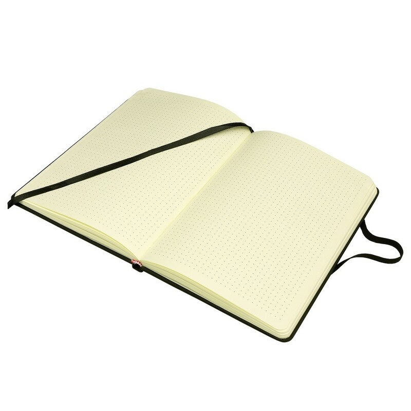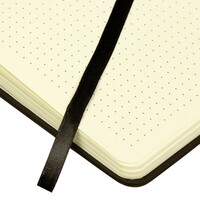 Notatnik w formacie A5, posiada 96 kartek w kropki (192 strony), tasiemka zakładkowa umożliwia wygodne zaznaczanie ostatniej strony lub ważniejszych notatek, dodatkowe zamknięcie w postaci dopasowanej kolorystycznie elastycznej opaski, twarda okładka wykonana z PU