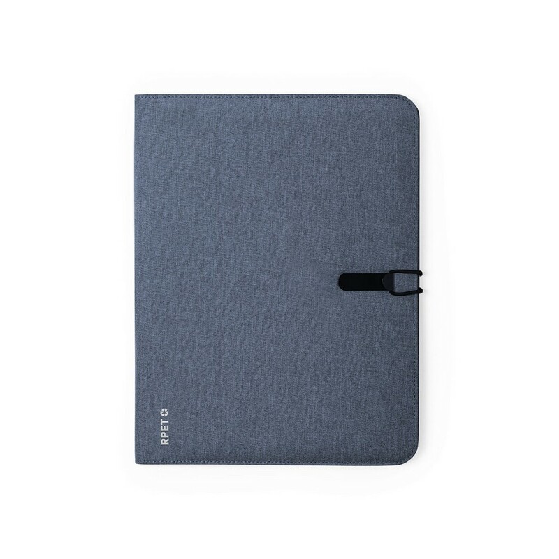 Teczka konferencyjna A4 z notatnikiem (20 jednostronnych kartek w linie), wykonana z RPET, elastyczne zamknięcie, 3 przegrody, uchwyt na kartę, uchwyt na długopis