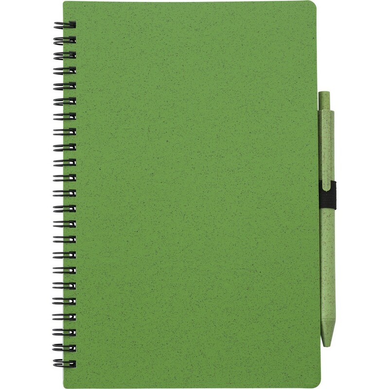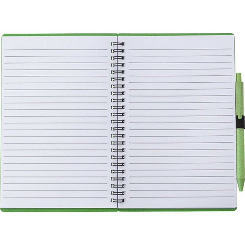 Notatnik ok. A5 (70 kartek w linie), okładka ze słomy pszenicznej i PP, długopis ze słomy pszenicznej, spiralne bindowanie