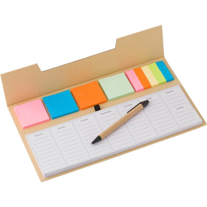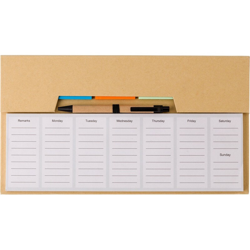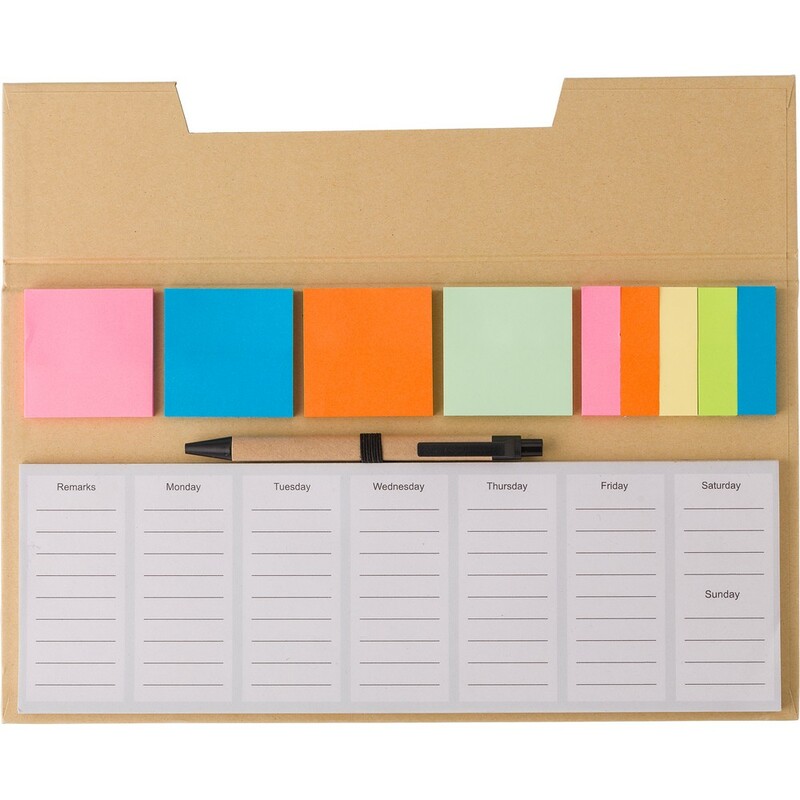 Zestaw do notatek, notatnik, karteczki samoprzylepne, długopis, 50 kartek, na pierwszych 5 stronach planer tygodniowy, pozostałe strony puste