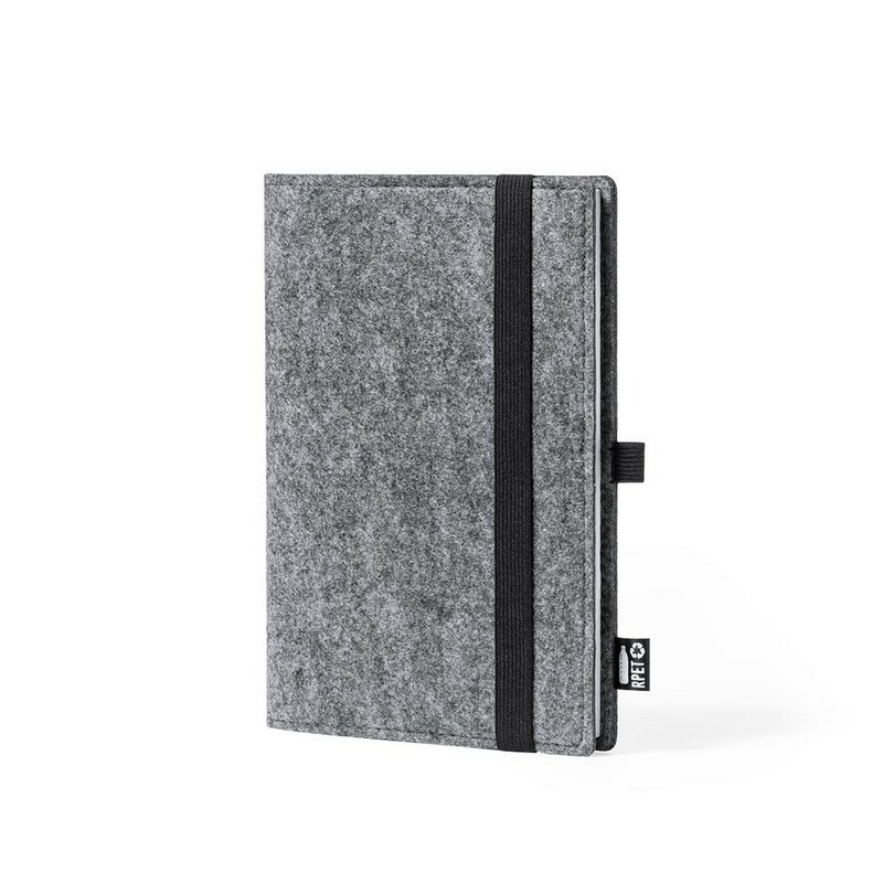 Notatnik A5 (100 pustych kartek), okładka wykonana z filcu RPET, elastyczna opaska do zamykania