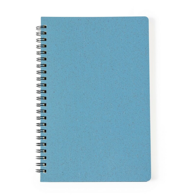 Notatnik (ok. A5, 80 pustych kartek) wykonany z włókien słomy pszenicznej, twarda okładka, spiralne bindowanie