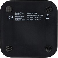 Ładowarka bezprzewodowa, wyjście USB do ładowania za pomocą kabla, bezprzewodowe ładowanie jest kompatybilne ze wszystkimi urządzeniami posiadającymi możliwość ładowania indukcyjnego, wejście micro USB, wyjście bezprzewodowe 5V/1A, wyjście USB 5V/2A, kabel w komplecie