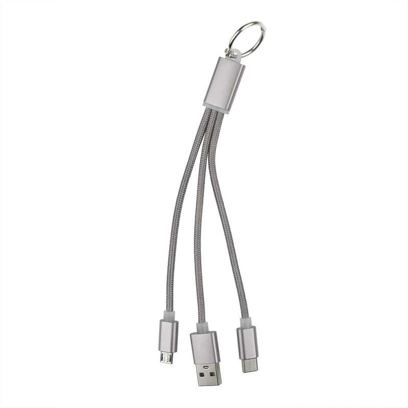 Brelok do kluczy, kabel do ładowania z 3 końcówkami: USB, USB typu C oraz micro USB