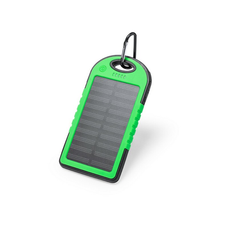 Wodoodporny power bank 4000 mAh z panelem słonecznym do ponownego ładowania power banku, przycisk on/off, lampka, 4 diody LED wskazujące poziom naładowania elektrycznego, 1 dioda LED wskazująca poziom naładowania słonecznego, 2 wyjścia USB, możliwość ładowania dwóch urządzeń jednocześnie, wejście 5V/1A, wyjście 1: 5V/1A, wyjście 2: 5V/1A, kabel micro USB oraz karabińczyk w komplecie