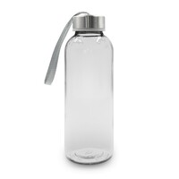 Butelka 420 ml, posiada zakrętkę w srebrnym kolorze oraz uchwyt ułatwiający noszenie, kolorowy pokrowiec w komplecie, produkt wykonany ze szkła i stali nierdzewnej