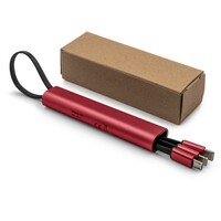 Kabel do ładowania z 4 końcówkami: USB, micro USB, USB-C oraz kompatybilną z urządzeniami iOS, co umożliwia jednoczesne ładowanie kilku urządzeń o różnych złączach, końcówka USB-C z funkcją transferu danych, długość kabla: 28 cm, obudowa kabla posiada dużą powierzchnię, która może zostać oznakowana i być nośnikiem logotypu lub hasła marketingowego, produkt wykonany z metalu i ABS