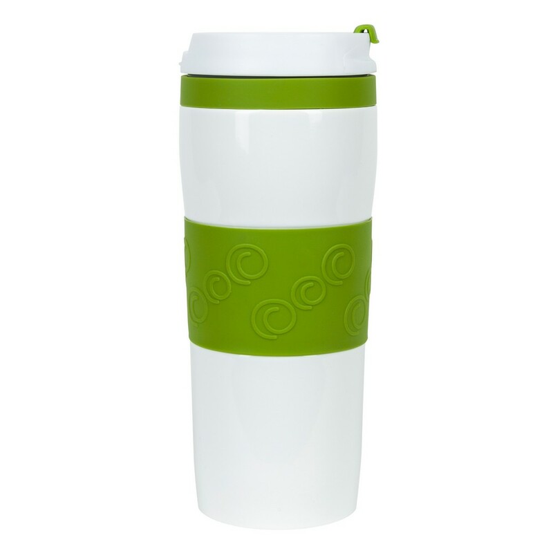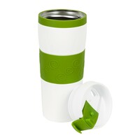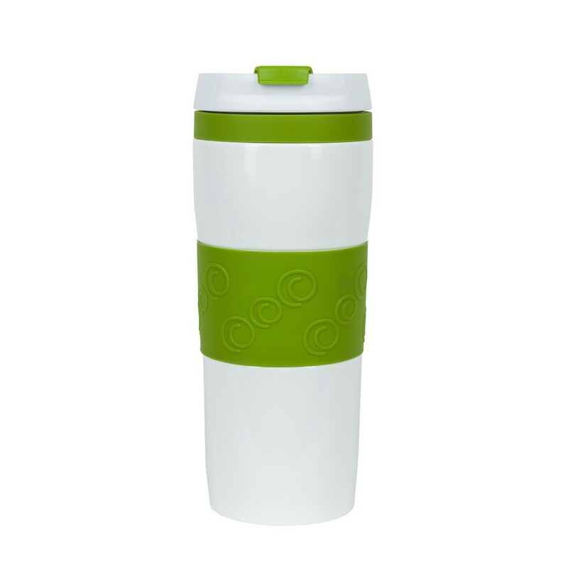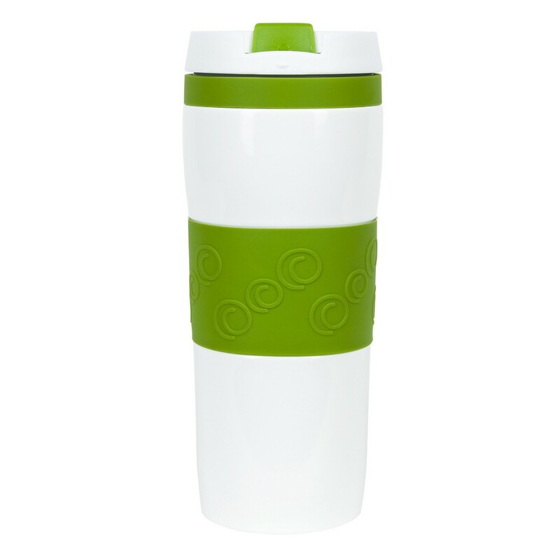 Kubek termiczny 400 ml Air Gifts, posiada podwójne ścianki ze stali nierdzewnej z miedzianą izolacją próżniową, co spowalnia oddawanie temperatury na zewnątrz, zachowując funkcje termosu, plastikowe wieczko z zamknięciem umożliwiającym obsługę jedną ręką, kolorowy silikonowy uchwyt zwiększający wygodę użytkowania, błyszczące wykończenie, utrzymuje temperaturę napojów gorących do 10 godzin +leakproof