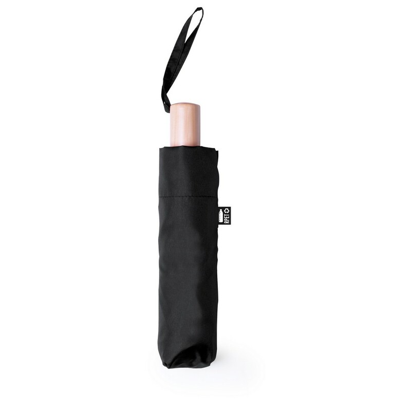Wiatroodporny parasol RPET, manualny, składany, 8 paneli, drewniana rączka, metalowa rama, zapięcie na rzep, pokrowiec w komplecie
