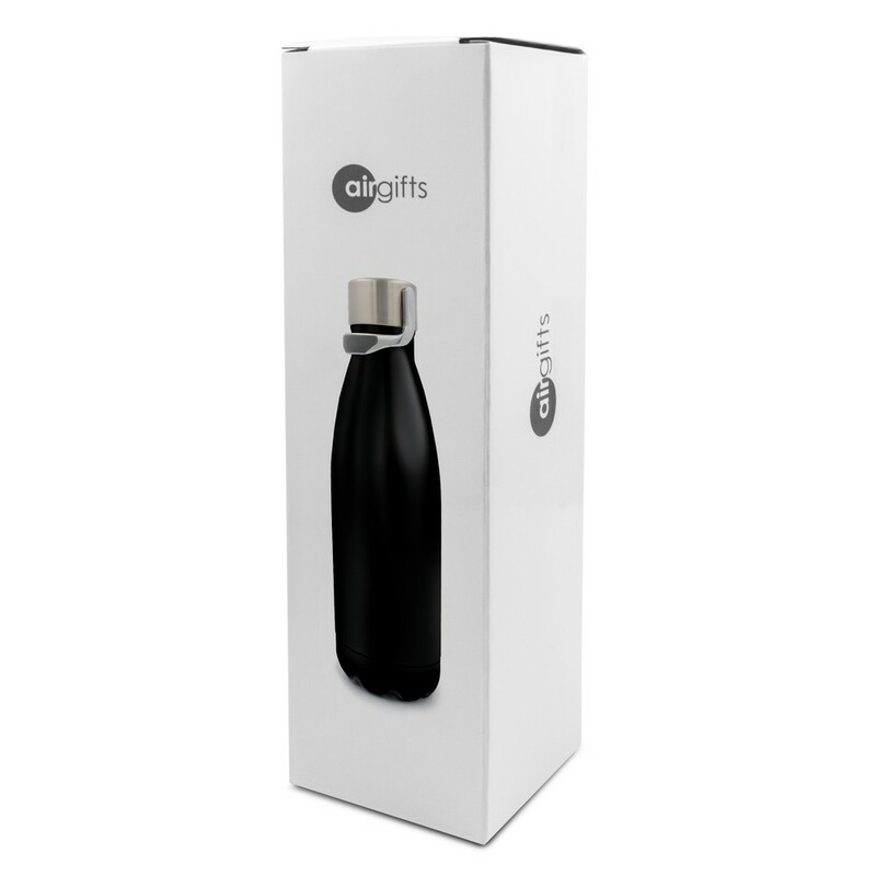 Butelka termiczna 500 ml Air Gifts ze składanym uchwytem, podwójne ścianki ze stali nierdzewnej z próżnią między ściankami dzięki czemu zachowuje funkcje termosu i długo utrzymuje temperaturę nie oddając jej na zewnątrz, w ozdobnym pudełku, błyszczące wykończenie, utrzymuje temperaturę napojów gorących do 20 godzin +leakproof