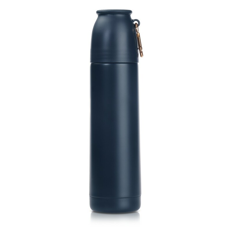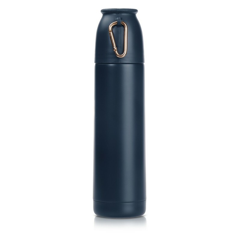 Termos 500 ml Air Gifts z karabińczykiem, podwójne ścianki ze stali nierdzewnej z próżnią między ściankami dzięki czemu długo utrzymuje temperaturę nie oddając jej na zewnątrz, funkcja push open/close, wieczko może pełnić funkcję kubka, utrzymuje temperaturę napojów gorących do 15 godzin +leakproof