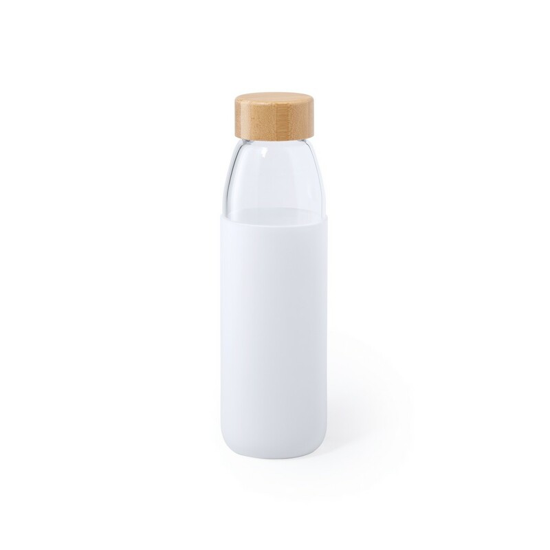 Szklana butelka 540 ml w silikonowym pokrowcu, bambusowa zakrętka