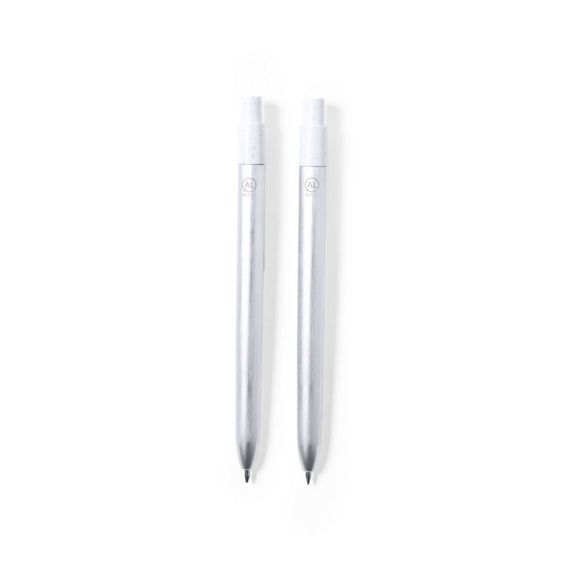 Zestaw piśmienniczy z aluminium z recyklingu, długopis i pióro kulkowe V1044-32