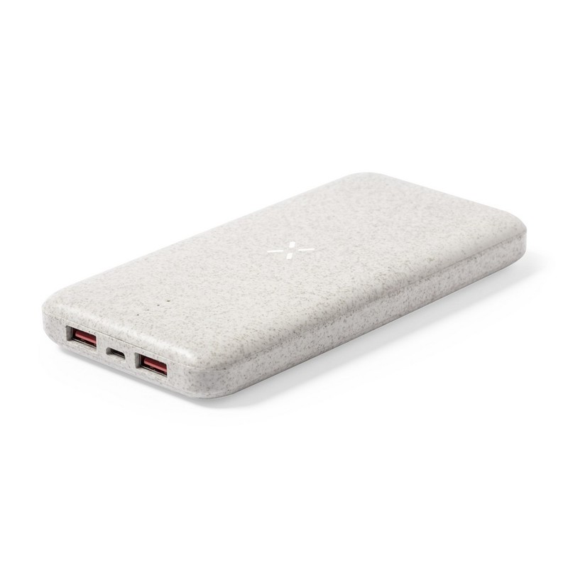 Bezprzewodowy power bank 8000 mAh ze słomy pszenicznej, ładowarka bezprzewodowa 10W V1119-00