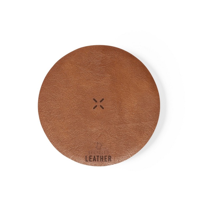 Ładowarka bezprzewodowa 15W wykonana z RABS i skóry z recyklingu, zgodna z certyfikatem RCS (Recycled Claim Standard), działa z urządzeniami posiadającymi możliwość ładowania indukcyjnego, antypoślizgowy spód, ochrona przed przegrzaniem, przeładowaniem i spięciem, wejście USB-C 5-9V/2-2.2A, kabel USB-C w komplecie