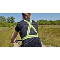 Kamizelka, szelki z szerokim zakresem regulacji, odpowiednie na wzrost 160-190 cm, zapięcie na klamrę zatrzaskową z miejscem pod znakowanie, połyskliwy pasek (do użytku promocyjnego)