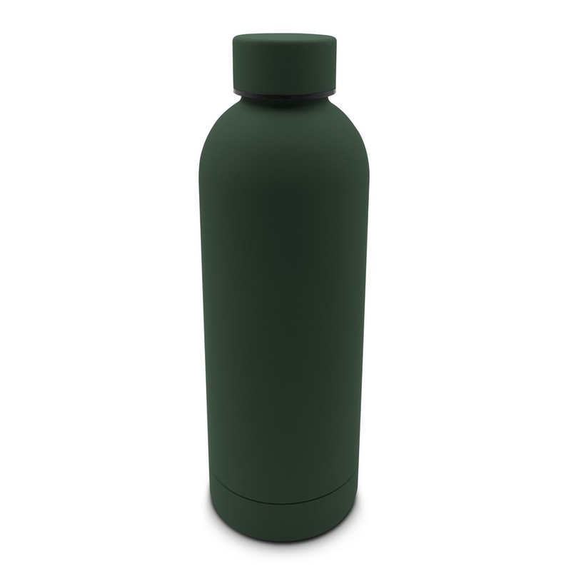 Butelka termiczna 500 ml, podwójne ścianki ze stali nierdzewnej z próżnią między ściankami dzięki czemu zachowuje funkcje termosu i długo utrzymuje temperaturę nie oddając jej na zewnątrz, gumowane wykończenie soft-touch, utrzymuje temperaturę napojów gorących do 20 godzin +leakproof