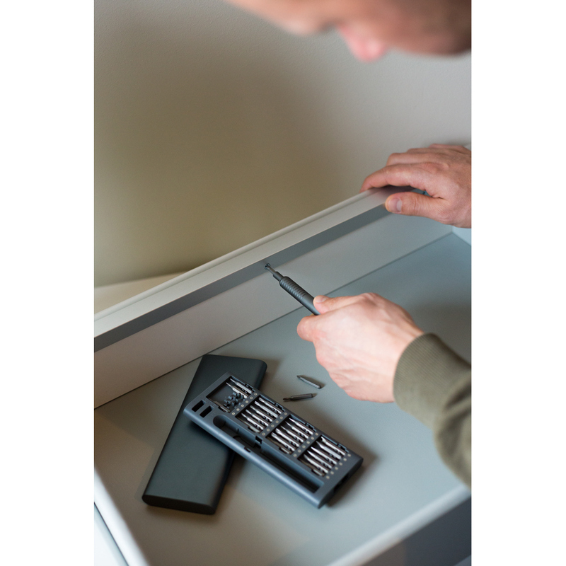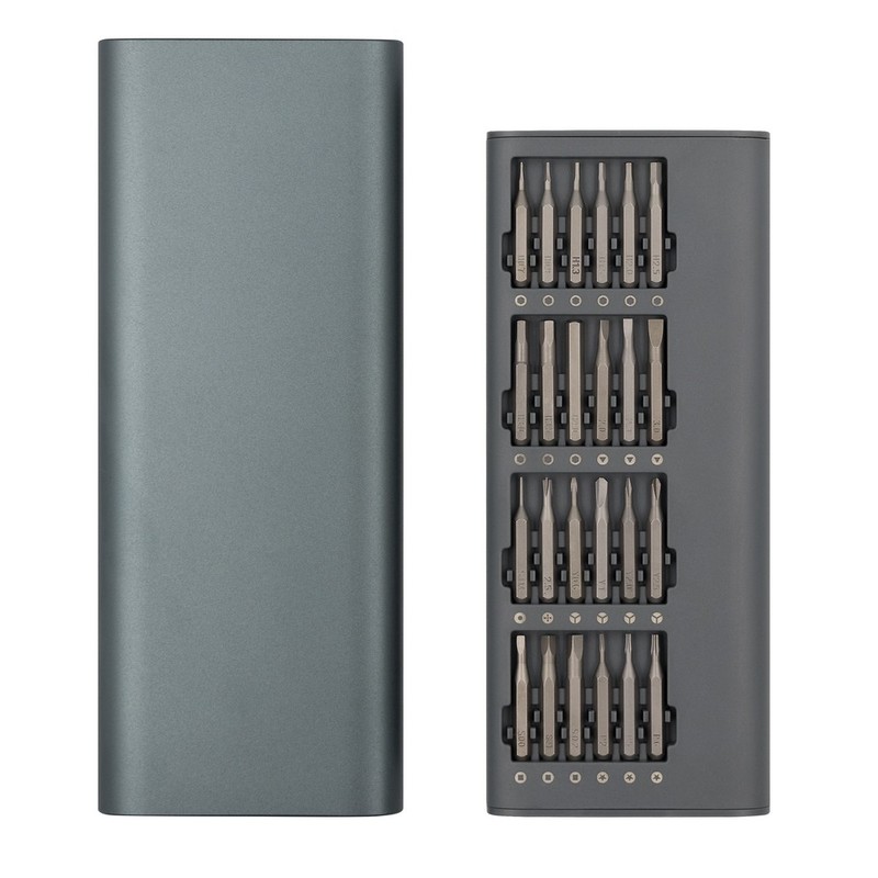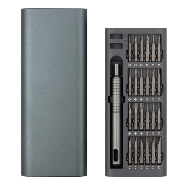 Śrubokręt, zestaw 48 końcówek w pudełku z otwarciem typu push open/close, pudełko z 2 komorami: do magnesowania bitów oraz do rozmagnesowywania bitów, magnes w rączce do przytrzymania końcówek