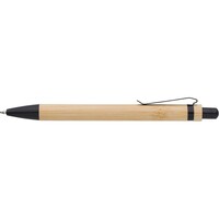 Długopis z trzonem wykonanym z bambusa, metalowe elementy, wkład w niebieskim kolorze, produkt wykonany z bambusa, metalu i plastiku