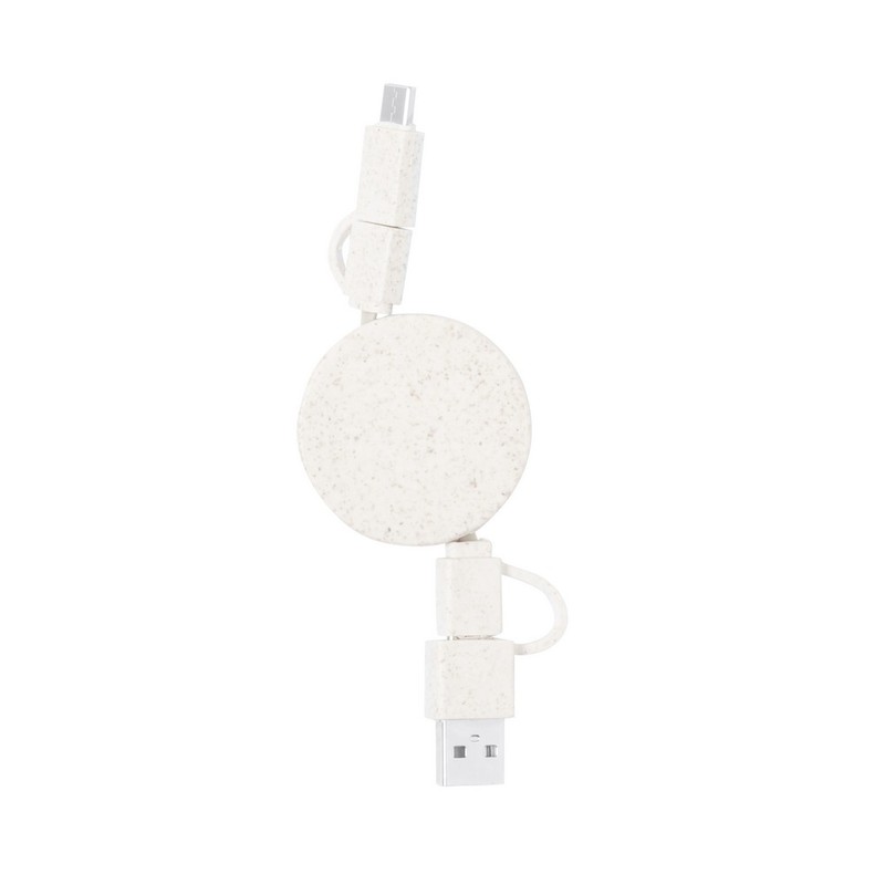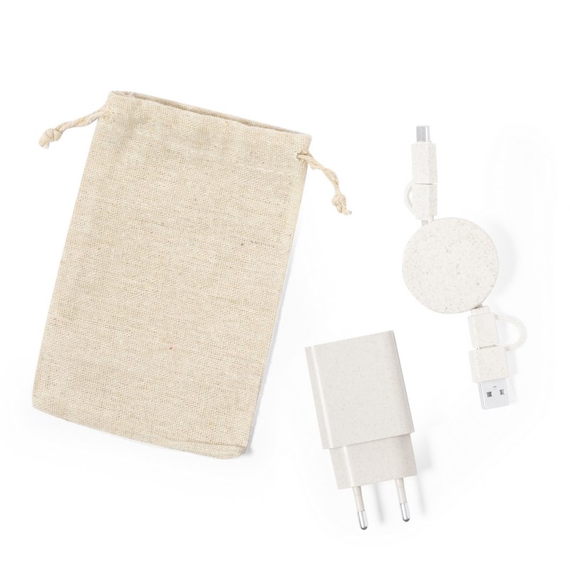 Zestaw podróżny do ładowania ze słomy pszenicznej, zwijany kabel do ładowania i synchronizacji, ładowarka ścienna, bawełniany pokrowiec V1355-00